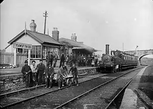 In 1882 the Bala and Ffestiniog Railway opened the line from Bala Junction to a temporary terminus at Festiniog, Trawsfynydd was one of the stations opened with the line. At Festiniog passengers had to transfer to narrow gauge trains if they wished to continue northwards.[12][13] To do this people travelling from Trawsfynydd to Blaenau or beyond walked the few yards from the standard gauge train to the narrow gauge train much as they do today between the Conwy Valley Line and the Ffestiniog Railway at Blaenau Ffestiniog.