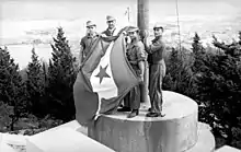 In June 1942, Italian forces withdrew 70–80 battalions of 200 stationed in the Zones II and III, choosing to garrison large population centres and major routes of transport only. This was motivated by the events of the previous winter, when the Yugoslav Partisans managed to cut off isolated Italian garrisons.[32] The withdrawal led the Italians to rely on the Anti-Communist Volunteer Militia, largely composed of Chetniks, as auxiliary units for anti-guerrilla warfare.[33] When Italian troops retreated after defeats in the 1942 Montenegro offensive and in the Operation Alfa, Partisans exploited the pullout, retaking the town of Bihać and surrounding parts of Zones II and III in November 1942.[34] This reclaimed territory became known as the Bihać Republic. Later that month, the Anti-Fascist Council for the National Liberation of Yugoslavia was established there as a Partisan-controlled pan-Yugoslav assembly.[35]