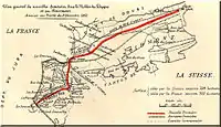 The Vallee des Dappes is a small valley about 6 kilometres (4 mi) long and 3 km (2 mi) broad, located in the Swiss Canton of Vaud. Although the valley had little value as a territorial possession, it provided an accessible military route between France and Savoy.[1] Annexed by Napoleonic France in 1802, it was returned to Switzerland by the Congress of Vienna, though the French continued to call for its retrocession. After several attempts to reacquire the area were firmly rebuffed by the Swiss, France decided in 1862 to offer a nearby section of its own territory, comparable in size, in exchange. The Swiss agreed, and a treaty to effect the switch was accordingly negotiated in Bern. Slightly less than 8 square kilometres (3 sq mi) of territory changed hands.[2] A set of maps showing the boundary changes may be viewed here.