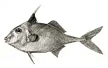 Triacanthus biaculeatus, also known as the short-nosed tripod fish, or silver horse-fish is a species of marine fish in the family Triacanthidae.[1] It is native to the Indian Ocean and the western Pacific Ocean.[2] Its caudal fin is yellow.[2] As the fish looks like a helicopter, it is locally known as the Helicopter fish in West Bengal.It has a long history providing food for the native culture.