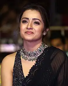 Trisha is an Indian actress who appears primarily in Tamil and Telugu films. She was first seen in 1999 in a minor supporting role in Jodi, then in the music video of Falguni Pathak's song "Meri Chunar Udd Udd Jaye".[1] The first project she accepted as a lead actress was Priyadarshan's Lesa Lesa, but a delay in the film's release meant that her first appearance in a lead role was in Ameer's directorial debut Mounam Pesiyadhe in 2002, which was a commercial success.[2][3]