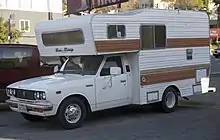 1978 Toyota Hilux compact truck with a Mini-Mirage camper. This would be classed as a RV, because the camper section is permanently attached to the frame of the truck.