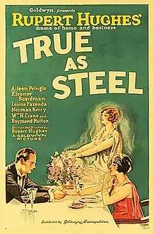 True As Steel is a 1924 American silent drama film directed and written by Rupert Hughes which stars Aileen Pringle and Huntley Gordon.[1] The film is about a married businesswoman who has an affair with a married colleague.[2]
