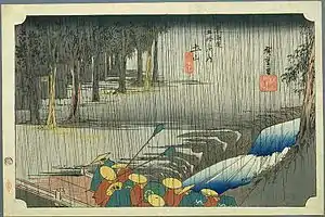 Hiroshige's print of Tsuchiyama-juku, part of the Hōeidō edition The Fifty-three Stations of the Tōkaidō series