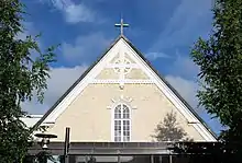 The Tuira Church (Finnish: Tuiran kirkko) is an evangelical Lutheran church in Tuira, Oulu. The church building has been designed by architect Harald Andersin and it was inaugurated as a chapel of Oulu parish in 1916. The parish of Oulu was divided into smaller parishes in 1966 and the chapel in Tuira was inaugurated as a church. At the time the first extension of the church was started according to plans of architect Mikko Huhtela. The current form is from 1992 when the second extension of the building was completed.[1]
