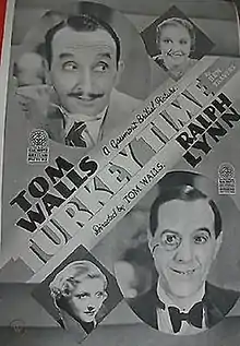 Turkey Time is a 1933 British comedy film directed by Tom Walls and starring Walls, Ralph Lynn, Robertson Hare and Dorothy Hyson.[1] The screenplay concerns a group of guests come to stay with the Stoatt family in the seaside town of Eden Bay for Christmas. They soon become involved with an impoverished concert performer whose innocent presence in the house leads to a series of misunderstandings. It was adapted from the 1931 play Turkey Time by Ben Travers, one of the Aldwych Farces.