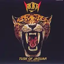 Tusk of Jaguar is the first solo studio album by Japanese guitarist Akira Takasaki, best known for his work in the rock bands Loudness and Lazy. It was released in 1982 only in Japan and reissued in 2005.[3] The album is actually a joint effort of Takasaki and keyboard player Masanori Sasaji, who composed three tracks and arranged and co-produced the recording. A large contribution was given to the album by Takasaki's bandmates in Loudness, who play in most tracks and collaborated to the musical arrangements. However, the music of Tusk of Jaguar is much more varied than in any Loudness' album, with its music ranging from hard rock to progressive rock to jazz fusion, reminiscing of some Dixie Dregs' and Al Di Meola's works.[2] The precise and fast guitar playing by Takasaki is anyway always present in every track and he even takes the lead vocal spot in the song "Ebony Eyes".