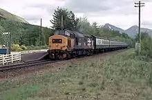 Tyndrum Lower railway station is one of two railway stations serving the small village of Tyndrum in Scotland, the other being Upper Tyndrum. This station is on the Oban branch of the West Highland Line, originally part of the Callander and Oban Railway. It is sited 34 miles 70 chains (56.1 km) from Callander via Glen Ogle, between Crianlarich and Dalmally.[3] ScotRail manage the station and operate all services.
