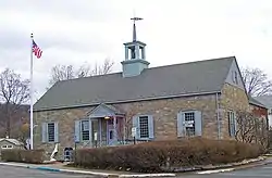 The building was one of many post offices in the region which were built of stone, reflecting the historical Dutch influence in the Hudson Valley, during the New Deal by the Works Progress Administration. President Franklin D. Roosevelt personally approved the design.[2] As a native of the region, he understood the importance of stone architecture and made sure that new post offices in the region were built in that style. In late 1939, villagers in Ellenville sent Roosevelt a telegram which complained that their new post office was to be brick, despite the presence of pre-Revolutionary stone houses in Ellenville's location, the Rondout Valley.[2][3]