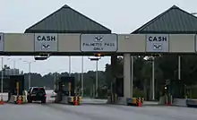 The controlled access toll road has only one interchange along its route at Marshland Drive. It was the first toll road built in South Carolina in modern history.[8] A majority of the road users pay their tolls using Palmetto Pass, South Carolina's system for electronic toll collection. Tolls were removed on June 30, 2021, not long after the last of the bonds sold to build the road were retired.[9][10]