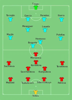 - 1 2 "Tactical Line-up – Russia-Spain" (PDF). UEFA.com. Union of European Football Associations. 18 July 2013. Retrieved 18 July 2013.