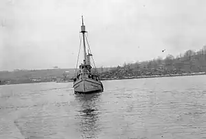 Ardent was built as a commercial fishing steamer by the Greenport Basin and Construction Company at Greenport on Long Island, New York, in 1902.[1] On 11 June 1917, the U.S. Navy purchased her from Raymond J. Anderson of Newport, Rhode Island,[1] for use as a section patrol boat and minesweeper during World War I.[2] She was commissioned on 15 August 1917 as USS Ardentand was given the hull number SP-680.[1]