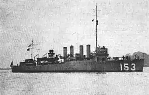 USS Bernadou (DD–153) was a Wickes-class destroyer in the United States Navy during World War II. She was named for Commander John Bernadou. Bernadou was launched on 7 November 1918 by William Cramp & Sons Ship and Engine Building Company, Philadelphia. The ship was sponsored by Miss Cora Winslow Bernadou, Commander Bernadou's sister. The destroyer was commissioned on 19 May 1919.