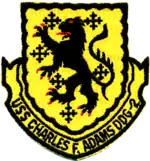 USS Charles F. Adams (DD-952/DDG-2), named for Charles Francis Adams III (Secretary of the Navy from 1929 to 1933), was the lead ship of her class of guided missile destroyers of the United States Navy. Commissioned in 1960, during her 30-year operational history she participated in the recovery operation for the Mercury 8 space mission, and the Cuban Missile Crisis, as well as operations in the Indian Ocean and Arabian Sea. Decommissioned in 1990, attempts to save her as a museum ship failed and she was scrapped in 2021.