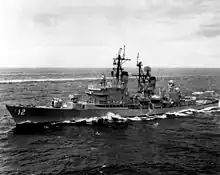 USS Dahlgren (DLG-12/DDG-43) was the 7th ship in the Farragut-class guided missile destroyer in the United States Navy. She was launched on 16 March 1960 by Philadelphia Naval Shipyard and sponsored by Mrs. Katharine D. Cromwell, granddaughter of Rear Admiral John Adolphus Dahlgren. She was commissioned on 8 April 1961. She was the third ship in the Navy to bear the name. Commissioned as DLG-12, Dahlgren was reclassified a guided missile destroyer on July 1, 1975 and given the new hull number DDG-43. The ship saw service until 1992, when she was placed in reserve. She was sold for scrapping three times, the first time in 1994, but was repossessed twice as the ship breaking companies failed. The ship was finally dismantled in 2006.