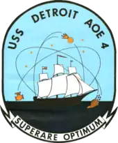 USS Detroit (AOE-4) was the fourth and last Sacramento-class fast combat support ship built for the United States Navy. She was laid down on 29 November 1966 by Puget Sound Naval Shipyard, Bremerton, Washington; launched 21 June 1969; and commissioned on 28 March 1970. She is the fifth United States Navy ship named after Detroit, Michigan, the largest city in the state of Michigan, and the river of the same name.
