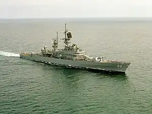 Originally called a "destroyer leader" or frigate (DLG), in 1975 she was re-designated a cruiser (CG) in the United States Navy 1975 ship reclassification.