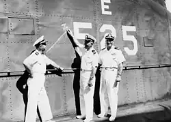 Lt. Cmdr. Ted Davis marks a "Z" on the sail of the submarine USS Grenadier (SS 525) after tracking a Soviet Zulu-class submarine for more than 18 hours, leading to the first documented evidence that the Soviet Union was conducting submarine operations in the Atlantic Ocean
