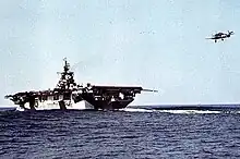 USS Hancock (CV/CVA-19) was one of 24 Essex-class aircraft carriers built during World War II for the United States Navy. Hancock was the fourth US Navy ship to bear the namesake of Founding Father John Hancock, president of the Second Continental Congress and first governor of the Commonwealth of Massachusetts.[Note 1] Hancock was commissioned in April 1944 and served in several campaigns in the Pacific Theater of Operations, earning four battle stars. Decommissioned shortly after the end of the war, she was modernized and recommissioned in the early 1950s as an attack carrier (CVA). In her second career, she operated exclusively in the Pacific, playing a prominent role in the Vietnam War, for which she earned a Navy Unit Commendation. She was the first US Navy carrier to have steam catapults installed. She was decommissioned in early 1976 and sold for scrap later that year.