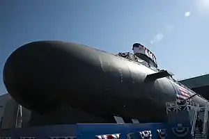USS Hyman G. Rickover (SSN-795), is a Virginia-class nuclear-powered attack submarine of the United States Navy and the second such boat commemorating Admiral Hyman G. Rickover, pioneer of the nuclear navy.[6] The boat's sponsor is Darleen Greenert, wife of then Chief of Naval Operations, Admiral Jonathan Greenert.[7] Both the boat's name and her sponsor were announced by the Secretary of the Navy at a ceremony at the Washington Navy Yard on 9 January 2015.[7] Hyman G. Rickover's christening occurred on 31 July 2021,[8] and she was commissioned on 14 October 2023, during a ceremony at Naval Submarine Base New London, in Groton, Connecticut.[4]