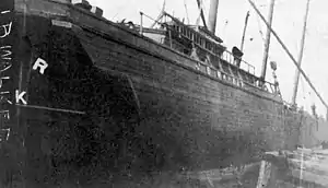 J.B. Walker, a 2,136 gross ton seagoing barge, was built at Thomaston, Maine, in 1879 as a schooner. She sank, or struck a submerged obstruction and was beached, near Great Round Shoals, Nantucket, Massachusetts on 29 July 1916. Later raised, or refloated, and taken to Providence, Rhode Island.[1][2] After operating commercially for nearly four decades, she was taken over by the U.S. Navy in October 1917 and placed in commission as USS J.B. Walker (ID # 1272) in August 1918.