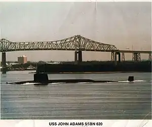 USS John Adams (SSBN-620), a Lafayette-class ballistic missile submarine, was the second ship of the United States Navy to be named for Founding Father John Adams (1735–1826), the second President of the United States (1797–1801), and his son John Quincy Adams (1767–1848), the sixth President of the United States (1825–1829). Both names were used with the captains of the Blue and Gold crews alternately using the names John Adams and John Quincy Adams.