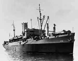 USS Joseph Hewes received for her World War II service Combat Action Ribbon (retroactive, 11 November 1942), American Campaign Medal, Europe-Africa-Middle East Campaign Medal with a battle star, as well as World War II Victory Medal.[4] Prior to her loss, Joseph Hewes had been designated for reclassification in early 1943 as an APA-class attack transport, USS Joseph Hewes (APA-22).[5] Her assigned hull numerical sequence, APA-22, was never reissued to another transport ship. In the 1956 Universal International production Away All Boats, the USS Randall (APA-224) wore hull number APA-22 while standing in as the motion picture's fictional USS Belinda.