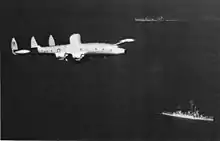 A WV-2 flies over USS Joyce in the 1950s.