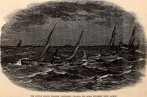 ![]() The Kennebec chasing the rebel steamer Grey Jacket | |