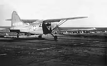 Marcus Island departed Ulithi on 21 March, as the flagship for Task Unit 52.1.2.[8] She arrived south of Kerama Retto on 26 March, where she commenced air operations.[28] On 5 April, Composite Observation Squadron (VOC) 1, which had previously been operating onboard Wake Island was embarked by Marcus Island. In turn, she exchanged her aircraft contingent to Wake Island, which had been damaged by a kamikaze, to be ferried back to Guam.[29]