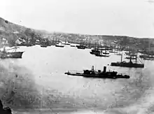 Miantonomoh, named after the Narragansett chief, Miantonomoh,[8] was laid down in 1862 at the Brooklyn Navy Yard, New York, launched on 15 August 1863, and commissioned on 15 September 1865[1] with Commander Daniel Ammen in command. Miantonomoh was assigned to the North Atlantic Squadron and made a brief cruise along the East Coast before she was decommissioned at the Washington Navy Yard. In late April 1866 she steamed to New York and was overhauled there in preparation for a voyage across the North Atlantic on a diplomatic visit to Russia. Now under the command of Commander John Beaumont, the monitor departed on 6 May escorted by the paddle steamers Augusta and Ashuelot.[8] After a brief stop at Halifax, Nova Scotia, the ships reached St. John's, Newfoundland, on 23 May. There Miantonomoh embarked the Assistant Secretary of the Navy, Gustavus Fox on 3 June and the British naval attaché, Captain John Bythesea, VC.[9]