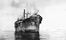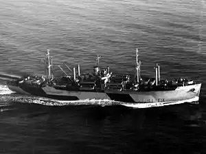 She decommissioned at Port Chicago, California, 13 September 1946 and entered the Pacific Reserve Fleet, Mare Island at Mare Island. Her name was struck from the Navy list 1 October 1958. She transferred to the Maritime Administration the same day and was assigned to the National Defense Reserve Fleet.[3] She was berthed in Suisun Bay, California on 29 October 1958. On 5 March 1977, she was sold to American Ship Dismantlers, Inc., for $218,001, to be scrapped. At 11:15 PDT, on 8 March 1975 she was withdrawn from the Reserve Fleet and sent to the breaker's yard.[4]