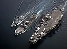 Passumpsic refueling the aircraft carrier Ranger and French frigate Latouche-Tréville during the 1991 Gulf War.