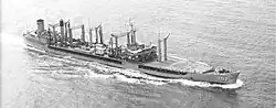 USS Passumpsic (AO-107) was laid down on 8 March 1945 as Maritime Commission Hull 2703 by Sun Shipbuilding and Drydock Company, Chester, Pennsylvania. She was launched on 31 October 1945, sponsored by Mrs. M. F. Draemel, wife of Rear Admiral Milo F. Draemel, then Commandant of the 4th Naval District, and commissioned on 1 April 1946. Due to her beginning as a "Maritime" Hull, Passumpsic has the distinction of being one of only six naval ships to have her Frame numbers running from Aft - Forward, instead of Forward to Aft.[4]