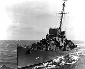USS Reynolds (DE-42) was an Evarts-class destroyer escort constructed for the United States Navy during World War II. She was sent off into the Pacific Ocean to protect convoys and other ships from Japanese submarines and fighter aircraft. She performed escort and antisubmarine operations in dangerous battle areas and was awarded eight battle stars, a very high number for a ship of her type.