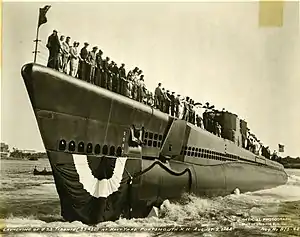 ![]() Tirante (SS-420) at her launch from Portsmouth Naval Shipyard. | |