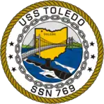 USS Toledo (SSN-769), is a United States Navy, Los Angeles-class nuclear-powered attack submarine and the third U.S. Naval vessel to be named for the city of Toledo, Ohio. The contract to build her was awarded to Newport News Shipbuilding and Dry Dock Company in Newport News, Virginia, on 10 June 1988, and her keel was laid down on 6 May 1991. She was launched on 28 August 1993, sponsored by Mrs. Sabra Smith, and commissioned on 24 February 1995.[3]