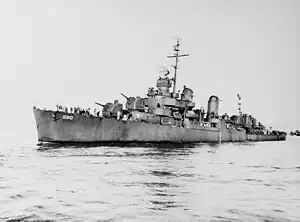 ![]() USS Young (DD-580) off the Mare Island Navy Yard, California, 26 July 1945 | |