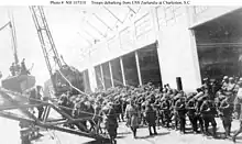 Repatriated US troops disembarking from Zeelandia at Charleston, South Carolina