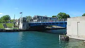 The US 31–Island Lake Outlet Bridge is a double-leaf bascule bridge in downtown Charlevoix in the U.S. state of Michigan. The bridge carries U.S. Highway 31 (known locally as Bridge Street) across Island Lake Outlet (also known as the Pine River Channel) that ultimately connects Lake Charlevoix to Lake Michigan.