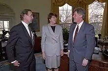 Biden with President Bill Clinton and Attorney General Janet Reno in the Oval Office, March 1993