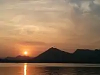 Udaipur was founded in 1559,[6] by Maharana Udai Singh II in the fertile circular Girwa Valley to the southwest of Nagda, on the Banas River. The city was established as the new capital of the Mewar kingdom. This area already had a thriving trading town, Ayad, which had served as the capital of Mewar in the 10th through 12th centuries.[6] The Girwa region was thus already well known to Chittaud rulers who moved to it whenever the vulnerable tableland Chittaurgarh was threatened with enemy attacks. Rana Udai Singh II, in the wake of 16th-century emergence of artillery warfare, decided during his exile at Kumbhalgarh to move his capital to a more secure location. Ayad was flood-prone, hence he chose the ridge east of Pichola Lake to start his new capital city, where he came upon a hermit while hunting in the foothills of the Aravalli Range. In the myth, the hermit blessed the king and guided him to build a palace on the spot, assuring him it would be well protected. Udai Singh II consequently established a residence on the site. In November 1567, the Mughal Emperor Akbar conquered Chittor. To protect his territory from attack, Rana Udai Singh built a six-kilometre-long city wall, with seven gates,[16] namely Surajpole, Chandpole, Udiapole, Hathipole, Ambapole, Brahmpole, Delhi Gate, and Kishanpole. The area within these walls and gates is still known as the old city or the walled city.