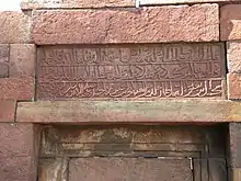 In addition to the dedicatory inscription, entrance porch of the temple has a series of more than sixty votive records.[4] Not yet studied in a systematic fashion, these form a continuous sequence from the time of the Paramāras – Devapāla (1218–39) is mentioned – through the period of the Tughluqs and beyond. For example, one inscription mentions a festival (yātrā) of the god Udaleśvara in 1338, the same year as the Tughluq inscription recording the construction of the mosque in the temple precinct.[5]