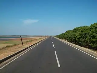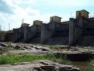 The Udawalawe Dam is a large irrigation dam in Udawalawe, in the Southern Province of Sri Lanka. The dam consists of an embankment section and a gravity section, combining the total dam length to approximately 3.9 km (2.4 mi). The dam is also used for hydroelectric power generation, powering two 2 MW units, commissioned in April 1969.[1]