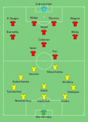 - ↑ Yatsenko was called up as a replacement for the injureds Serhiy Fedorov and Vyacheslav Shevchuk.