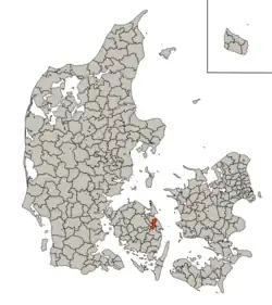 Ullerslev was located centrally in Ullerslev Municipality, and was home to a train station until 1977. The former city hall of Ullerslev Municipality, located in Ullerslev, is today a daycare.[5][6]
