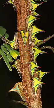 - 1 2 3 Dowell R., T. Wood (2014): Survival of brooding females and characteristics of oviposition sites of Umbonia crassicornis (Amyot & Serville, 1843) (Hemiptera: Membracidae). Pan-Pacific Entomologist: 90, 57-65