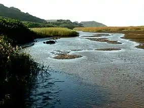 Umhlanga lagoon is a 26 hectares (64 acres) nature reserve on the shore of the Indian Ocean at Umhlanga Rocks, South Africa.[1] The reserve encloses the Ohlanga River's lagoon and mouth.[2] The forest forms a natural extension of the less accessible Hawaan Forest, of which the greater part lies inland of the busy M4 road. The reserve trails start at a car park at the northern end of Lagoon Drive, Umhlanga.