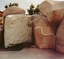 Initially, the only way to enter the Underground House was through this boulder front door.