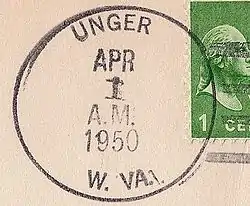 Unger is an unincorporated community in southern Morgan County in the U.S. state of West Virginia. Unger is distinguished amongst other towns in Morgan County for retaining an operating post office since one was established there in 1853. From 1857 to 1935, it was known as Unger's Store until March 31, 1950 (see image) its name was then shortened to Unger on April 1, 1950 [2] (see image).